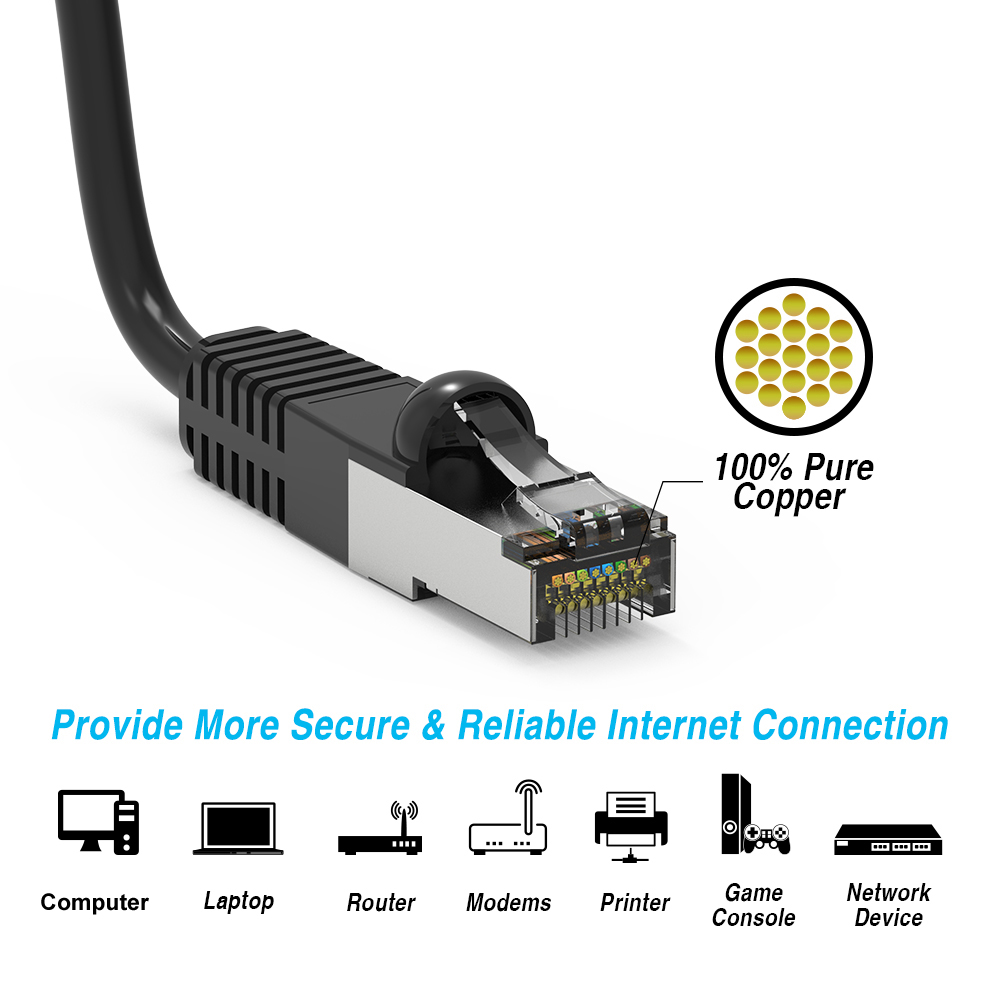 Bestlink Netware Category 6 shielded patch cable is designed to protect critical data from EMI (ElectroMagnetic interference), which is known to degrade, disrupt, or even interrupt connectivity. Electromechanical devices, such as electric motors, transformers, magnets, and fluorescent lighting ballast cause this type of interference. Shielded patch cables are ideal wherever stable data transfer is critical in this type of environment, and are especially useful in healthcare and manufacturing facilities. Each comes UL verified and meets .TIA/EIA-568-C.2 Cat.6 standards.